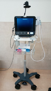 このシステムにより、従来のようにフィルムを使用せず、モニターにて画像を見ることができ、画像処理(病変部の拡大や強調)や過去の画像との比較が診察室で簡単におこなえます。