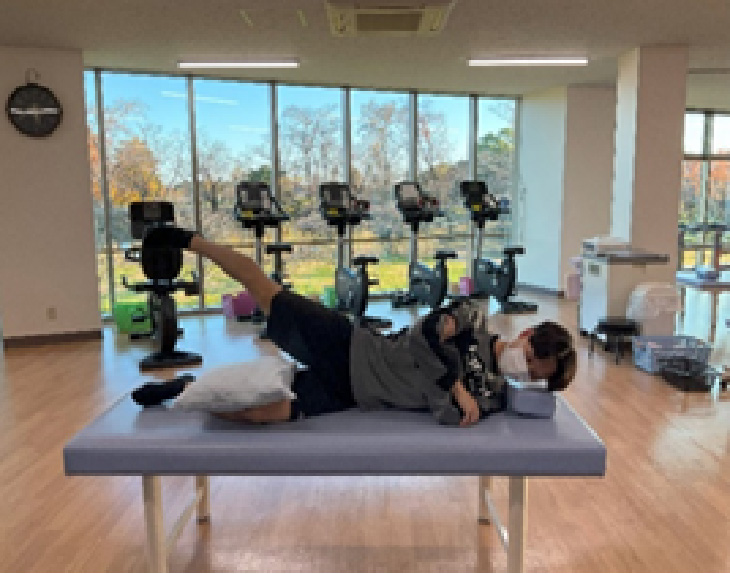 股関節周囲の筋肉を鍛えることで、股関節の安定した動きを習得します。 -