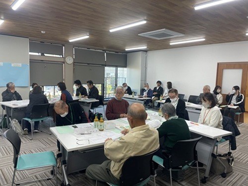 地域包括支援センター松原では、地域にお住まいの皆さまが安心して暮らせるまちづくりを目指し、地域住民と商店や企業の方々と地域課題について話し合う「地域協議会」を定期的に開催しております。今回は、松原地区の魅力を再発見し、共有するための地域情報マップ(愛称:まつばらいふまっぷ)について熱心な議論が行われました。
